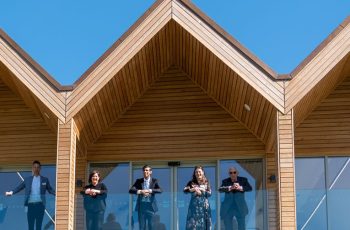 The new building known as “The Dales Stand” provides hospitality facilities for the North Yorkshire racecourse at Catterick Bridge and replaces a smaller Tote building which was no longer fit for purpose. The new facility is a multi-functional building which on race days provides facilities for visiting owners, trainers, and jockeys and on non-race days provides space for private functions and events, with a large open bar on the ground floor and a restaurant on the upper first floor.