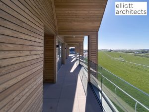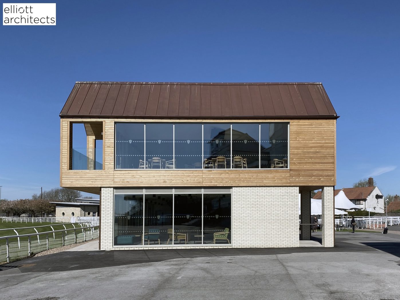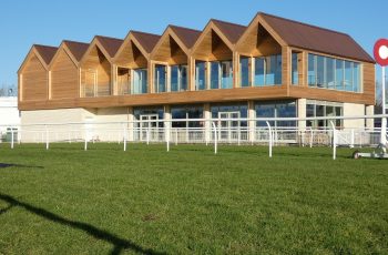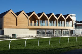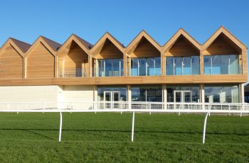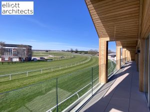 Large windows, curtain walling and large opening doors to viewing terraces provide a modern feature and give the building a light and airy feel with excellent views across the track and paddock.